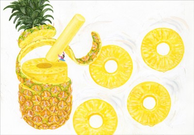 はらぺこめがね ジクレー版画(額装完成品) しあわせのパイナップル 9798