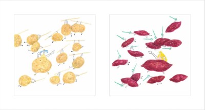 はらぺこめがね キャンバスジクレー版画(額装完成品) おいも合戦 9806
